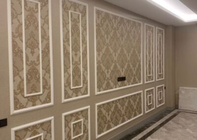 تركيب ورق الجدران يضيف لمسة جمالية فريدة للغرف، يغطي العيوب بسهولة، يوفر خيارات تصميم متعددة، يعزز الديكور الداخلي، ويسهل التغيير والتجديد دون تكلفة عالية أو تعب كبير.